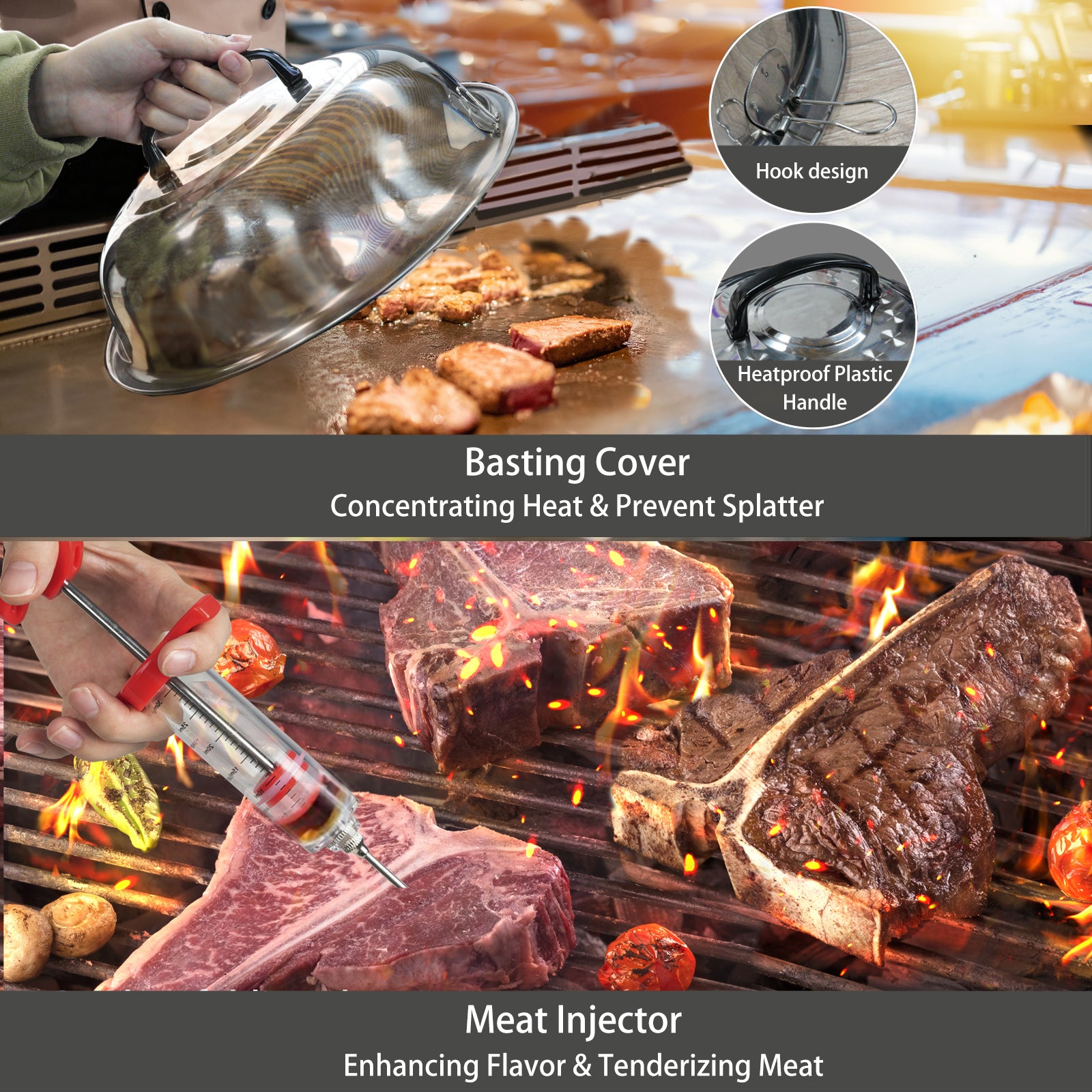【Complete 135-Piece Griddle Accessories Kit】The KingChii kit offers a comprehensive set for all your grilling needs: 1 * Spatula, 1 * Slotted spatula, 1 * Basting cover, 1 * Grill tongs, 1 * Grill fork, 1 * Meat knife, 1 * Basting brush, 1 * Fish turner, 1 * Chopper, scraper, 2 * Sauce dispenser(16oz), 4 * Egg rings, 2 * Spice shaker, 1 * Scissors, 1 * Silicone gloves, 1 * Meat thermometer, 1 * Meat injector, 1 * Apron, 1 * Cleaning Brush, 1 * Storage bag, 10 * Hooks, 100 * Bamboo skewers. Everything you need for a professional BBQ experience.【Durable & Heat-Resistant Materials】Made from high-quality PP, metal, ABS, PE, and silicone, these grill tools are built to last. The heat-resistant and rust-proof design ensures your tools will remain reliable for every BBQ session, while the silicone gloves provide extra protection when handling hot items.【Versatile Tools for All Cooking Styles】With specialized tools like a fish turner, meat injector, and egg rings, this set is perfect for grilling, frying, marinating, and more. The bamboo skewers are great for kebabs, while the chopper/scraper makes food prep and griddle cleaning simple and efficient.【Easy to Clean & Store】All tools are dishwasher-safe for quick cleanup, and the included storage bag keeps everything organized for on-the-go use. The cleaning brush and silicone gloves ensure safe and easy maintenance of your grilling tools.【Perfect for All Occasions】Whether you are hosting a backyard BBQ, camping, or grilling by the beach, the KingChii 135-Piece Kit has you covered. Its wide range of tools allows you to prepare anything from juicy steaks to delicate fish and veggies with ease.【Great Gift for BBQ Lovers】This all-inclusive set makes the perfect gift for any grilling enthusiast. With 135 pieces packed into a durable storage bag.